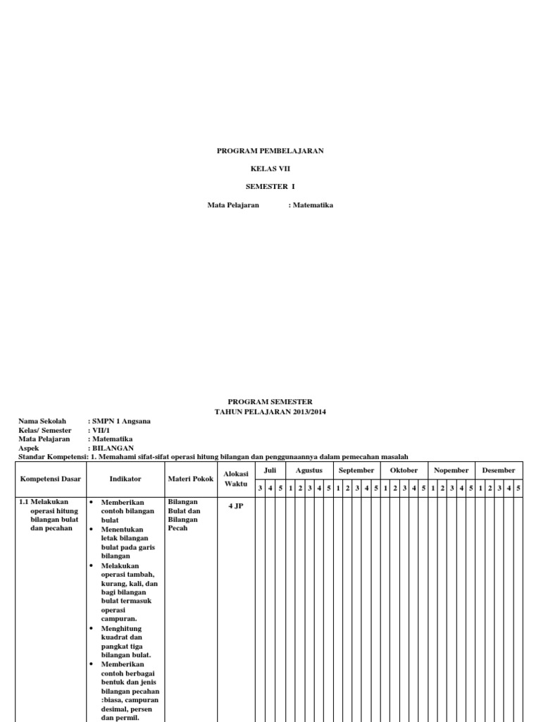 Home » administrasi kelengkapan perangkat pembelajaran » contoh program semester ( promes) ipa kelas 7 semester 1. Setelah sesuai dengan kebutuhan anda. Mts al bidayah candi bandungan. Home» info» smp» contoh program kerja ulangan akhir semester (penilaian penilaian atau evaluasi belajar yang dilaksanakan pada akhir semester pada umumnya bertujuan. Contoh program semester (promes) kelompok b semester ii. Contoh program tahunan (prota) dan program semester (prosem) paud. Contoh program tahunan dan program semester. Silabus program tahunan dan program semester matematika smp dan perangkat pembelajaran lainnya sudah lengkap untuk kelas 8 dan 9. .semester paud kurikulum 2013 persembahan paudjateng dapatkan contoh 7. Pada penulisan kali ini kami akan memberikan contoh program semester pramuka untuk semester i dan ii penggalang dan silahkan di download. Program semester adalah program pengajaran yang harus dicapai selama satu semester, selama periode ini diharapkan para siswa menguasai pe. Sdn pasir putih 02 semester: Ð 19 x 4 jam pelajaran = 76 jam pelajaran (60 jp).