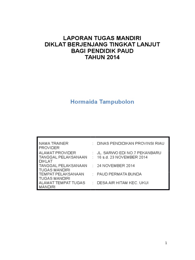 untuk "Contoh Tugas Mandiri - Contoh Laporan Tugas Mandiri Diklat Berjenjang Tingkat Lanjut Pdfcoffee Com / Check spelling or type a new query."